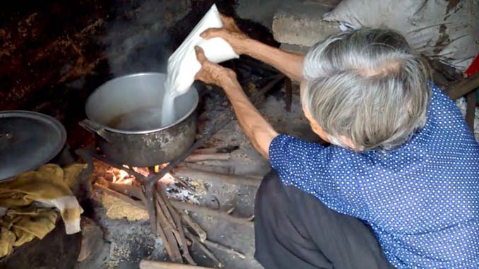 Bà phân tích: Đun sôi một nồi nước giếng này, bỏ đường vào, nổi lửa, khuấy đều lên. Bao giờ thấy nước đường chuyển sang màu cánh gián, đang khuấy mà nhấc đũa lên thấy “mật” có độ dính bám chảy đều thì dụi lửa. Đợi nó nguội thì đổ ra chai. Nhớ là khi đổ mật giả gần đầy thì dừng lại, để một đoạn cổ chai để đổ mật ong thật vào. Mục đích là khi khách hàng muốn nếm, thì họ uống dính mật thật, tin sái cổ.
