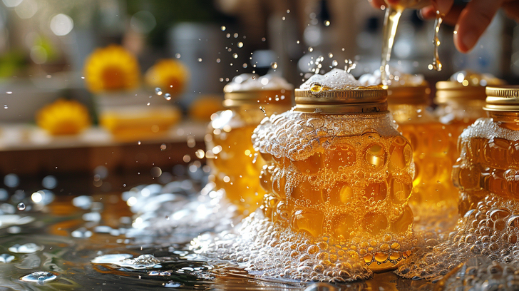 Rửa sạch bằng nước nóng: Sử dụng nước nóng để rửa sạch mọi bã mật ong còn sót lại trong lọ.