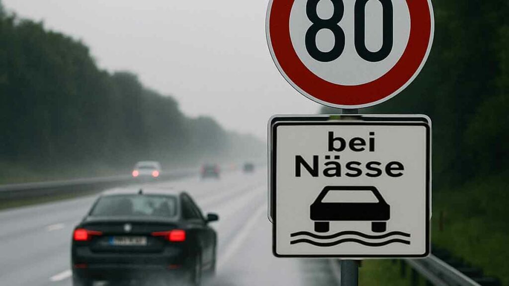 Bạn đã từng thấy biển báo giới hạn tốc độ kèm dòng chữ “bei Nässe” – nghĩa là “khi đường ướt” chưa? Đây là một trong những biển phụ khiến nhiều người lái xe ở Đức bối rối. Giới hạn tốc độ chỉ có hiệu lực khi đường thật sự ướt. Nhưng như thế nào mới là “ướt”? Mưa phùn có tính không? Một vài vũng nước thì sao? Hãy cùng tìm hiểu!
