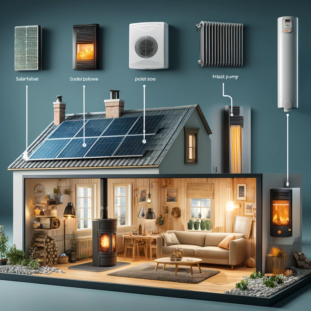 2. Hệ thống sưởi bằng gỗ hoặc viên nén (Pellets): Phù hợp cho những ngôi nhà lớn, nhưng cần có không gian lưu trữ và chi phí ban đầu cao.