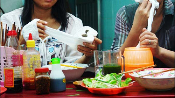 BS Nguyễn Xuân Mai – Nguyên Viện phó Viện Vệ sinh Y tế công cộng (TP.HCM) cho biết, việc dùng giấy vệ sinh làm giấy lau miệng vô cùng nguy hại. Trong quá trình sản xuất, tay chân của công nhân không được vệ sinh sạch sẽ và ở môi trường quá ô nhiễm sẽ là một ổ vi khuẩn. Từ đó, các vi khuẩn dễ dàng xâm nhập vào giấy ăn khi chúng được sản xuất xong như các loại vi khuẩn cầu trùng, ecoli… Khi lau miệng thì các vi khuẩn, vi trùng sẽ gây ra các bệnh như tiêu chảy, tả, lị, thương hàn… qua đường tiêu hóa đối với những người có đề kháng yếu.
