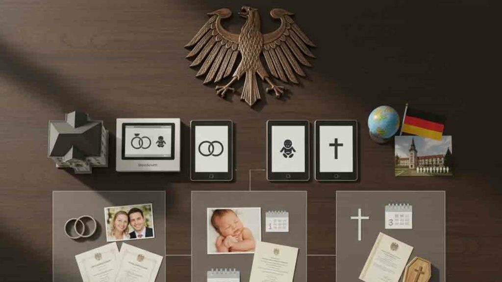 Tìm hiểu chi tiết về Luật hộ tịch (Personenstandsrecht) ở Đức – quy định các thủ tục khai sinh, kết hôn, ly hôn, khai tử, cũng như cách sử dụng giấy tờ hộ tịch đúng quy định.