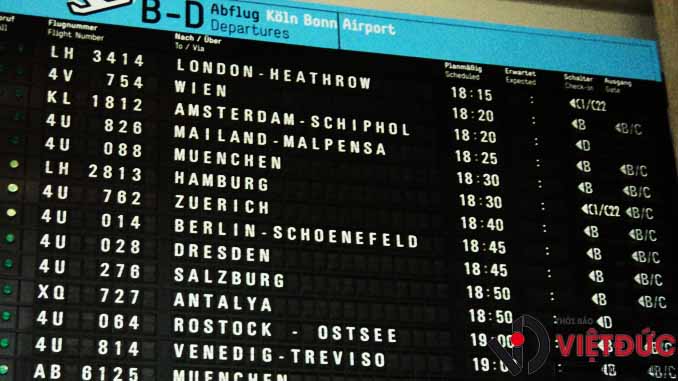 TBVĐ- Hôm nay tại hai sân bay Cologne/Bonn và Düsseldorf giao thông hàng không bị ảnh hưởng do đình công của nhân viên.