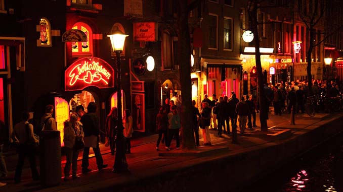 Tại Amsterdam có ba phố đèn đỏ. Nổi tiếng nhất là phố đèn đỏ De Wallen rộng 6.500mgồm nhiều khối nhà tọa lạc ở khu vực cổ xưa nhất của thành phố.