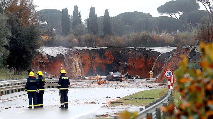 Một hố tử thần khổng lồ bất ngờ xuất hiện giữa lòng Rome, khiến hai chiếc ô tô rơi xuống độ sâu mười mét. Lực lượng cứu hộ đã nhanh chóng có mặt tại hiện trường.