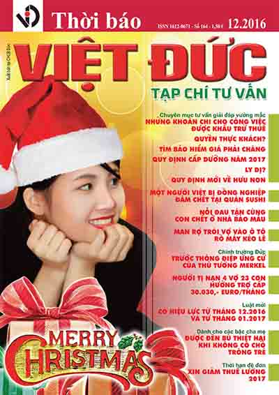 Titel_12_2016_chon_Layout 1.qxd Nhân dịp Giáng sinh, Thời báo Việt Đức xin tặng 50 cuốn Tạp chí tư vấn số tháng 12 năm 2016 cho 50 độc giả tại Đức đăng kí đầu tiên. Để nhận được tạp chí miễn phí (Báo + phí gửi bưu điện) Quý độc giả chỉ cần: