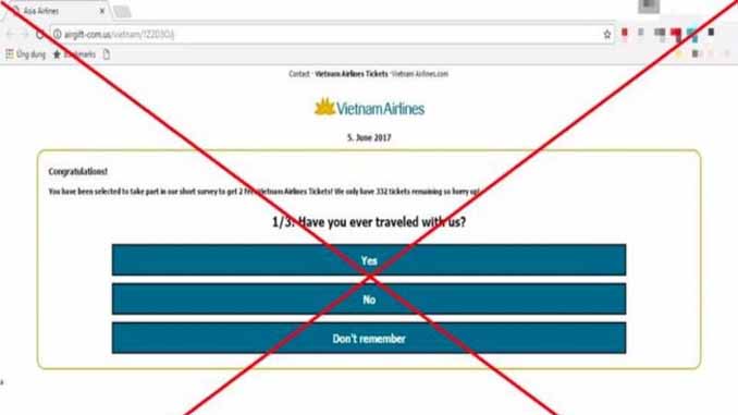 Trong thời gian gần đây, trên mạng xã hội xuất hiện đường link dẫn đến một trang web giả mạo, tặng vé của nhiều hãng hàng không trên thế giới, trong đó có Vietnam Airlines.