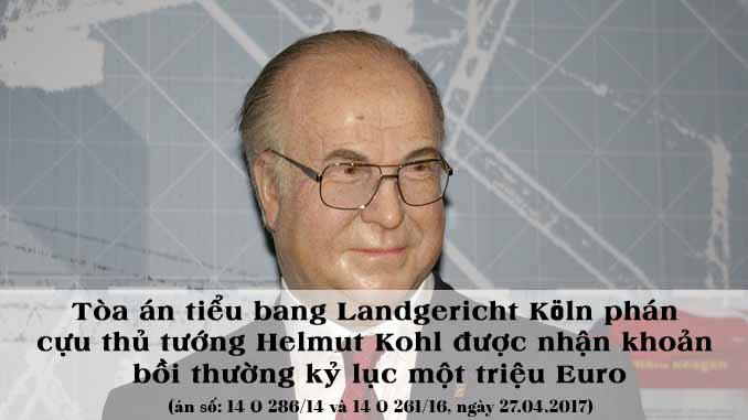 Tháng 4, tòa án tiểu bang Landgericht Köln đã phán cựu thủ tướng Helmut Kohl được nhận khoản bồi thường kỷ lục một triệu Euro, do việc xuất bản quyển sách „Di sản – Biên bản Kohl“ vi phạm trách nhiệm im lặng, giữ bí mật và vi phạm nặng nề quyền cá nhân của vị cựu thủ tướng 87 tuổi ở 116 đoạn văn (án số: 14 O 286/14 và 14 O 261/16, ngày 27.04.2017).