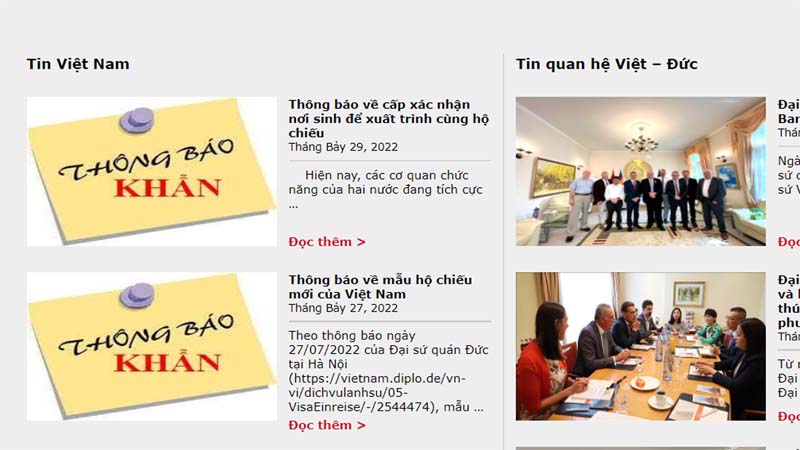 Thông báo cập nhật ngày 29/07/2022 trên trang web của Đại sứ quán Việt Nam ở Đức: