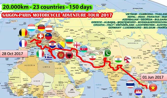 Về thủ tục, giấy tờ visa cho cả người và xe, Khoa khẳng định việc này không quá khó. Trước khi đi, anh chỉ xin 3 visa: Ấn Độ, Pakistan và visa Schengen (dành cho những nước thuộc Hiệp định Schengen tại châu Âu). Còn lại, anh xin “cuốn chiếu”, hoặc xin visa online (e-visa) để đảm bảo lộ trình.
