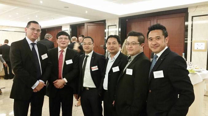 Nhật Anh và những người bạn cùng Tham Tán Công Sứ Thương Mại Nguyễn Hữu Tráng (từ trái sang: Anh Hiển Tô – GĐ. Kinh Doanh On-Way GmbH, Tham tán Nguyễn Hữu Tráng, Anh Hữu Hưng Nguyễn – GĐ. M3DIA Internetagentur, Anh Sơn Thu Nguyễn – Chủ Tịch Hội VDB, Nhật Anh và Luật Sư Tuấn Anh Delarber. Ảnh nhân vật cung cấp