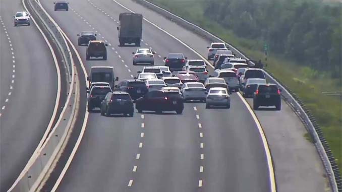 Đoàn xe đám cưới đỗ ngổn ngang trên cao tốc để chụp ảnh, quay video sáng ngày 7/6 tại Km40 hướng Hà Nội – Hải Phòng.