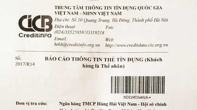 Theo phản ánh của anh Vũ Thế V. (36 tuổi, trú tại quận Thanh Xuân, Hà Nội), ngày 28/9, anh có tới ngân hàng TMCP hàng hải Việt Nam (Maritimebank) để làm thủ tục vay vốn. Tại đây, nhân viên ngân hàng yêu cầu anh V. cung cấp số CMND để họ tra cứu trên Trung tâm thông tin tín dụng Quốc gia Việt Nam.
