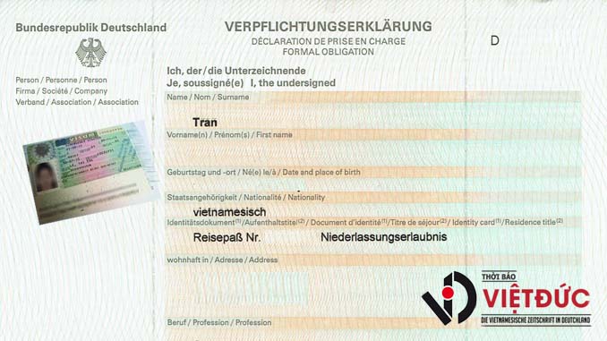 Người mời phải cam kết bảo lãnh trước cơ quan có thẩm quyền tại nơi sinh sống. Trước khi cấp giấy cam kết bảo lãnh cơ quan có thẩm quyền của Đức sẽ kiểm tra xem người mời có đủ khả năng tài chính để làm giấy cam kết bảo lãnh này hay không.
