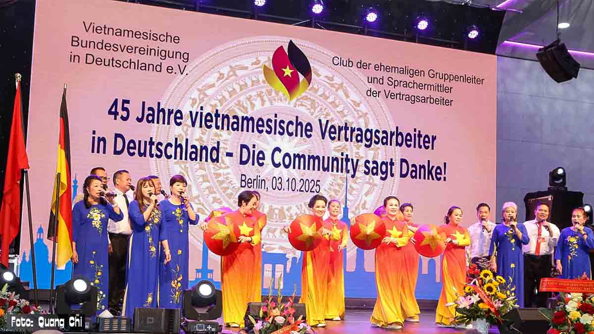 Chiều ngày 03.10.2025, tại Nhà văn hóa Trung tâm Thương mại Đồng Xuân ở Berlin, sau 45 năm người Việt trong khuôn khổ hợp tác lao động giữa Việt Nam và Cộng Hòa Dân Chủ Đức đã nói lời cảm ơn và tri ân tới nước Đức.