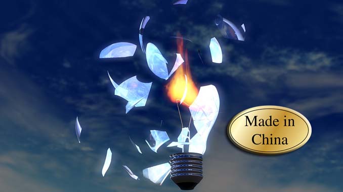 “Một bóng đèn được chào bán với giá 2,50 Euro, chỉ bằng 1/10 giá của sản phẩm có thương hiệu ở Đức. Nhưng điều đó đồng nghĩa với việc các thành phần bóng đèn được sản xuất từ những nguyên liệu rẻ tiền”, thanh tra Uwe Saalmann của cơ quan lên bang quản lý về điện, khí đốt, viễn thông, bưu chính, đường sắt Bundesnetzagentur (BNetzA) cho biết. Nhiệt được tích tụ trong các sản phẩm kém chất lượng là nguyên nhân chính dẫn đến các vụ cháy nổ. Trong các sản phẩm luôn thiếu chứng nhận an toàn CE bắt buộc của liên minh châu Âu.