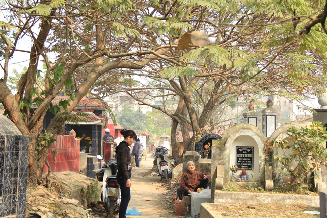 Trong ngày Thanh minh, khu nghĩa địa trở nên đông đúc và nhộn nhịp. Các cụ già thì lo khấn vái tổ tiên nơi phần mộ. Trẻ em cũng được theo cha mẹ hay ông bà đi tảo mộ, trước là để biết dần những ngôi mộ của gia tiên, sau là để tập cho chúng sự kính trọng tổ tiên qua tục viếng mộ. Những người quanh năm đi làm ăn xa cũng thường trở về vào dịp này để tảo mộ gia tiên và sum họp với gia đình.