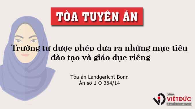 TBVĐ – Quy định này không vi phạm quyền tự do tín ngưỡng của công dân. Phán quyết trên được tòa án Landgericht Bonn đưa ra trong vụ kiện sau (án số: 1 O 364/14).
