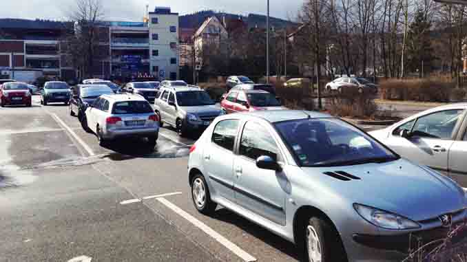 Chỉ khi bãi đỗ có làn đường rõ ràng với đặc điểm giống như đường giao thông, thì quy tắc “rechts vor links” – bên phải được đi trước – mới có hiệu lực.